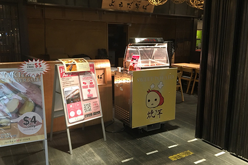 ショッピングモールなどのフロアでも安全に設置していただく事が可能で、人の通りの多い場所などにも最適です。焼き芋の美味しそうな香りでお客様へのアピールも万全。